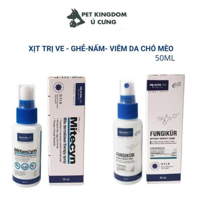 Alkin Fungikur – Mitecyn Thuốc Xịt Trị Nấm Ngứa, Viêm Da, Ghẻ Cho Chó Mèo Chai 50ml