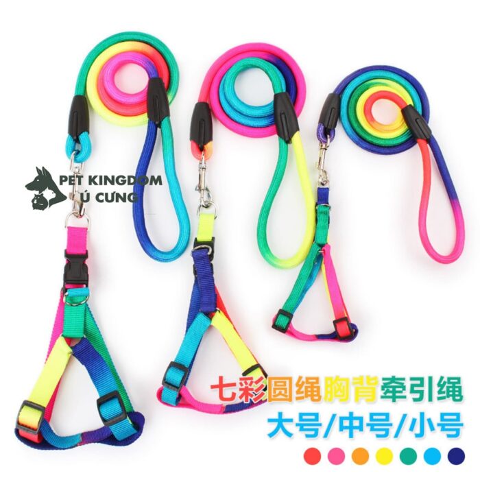 Dây Dắt Tròn Kèm Yếm Ngực Cho Chó Mèo Màu Cầu Vồng